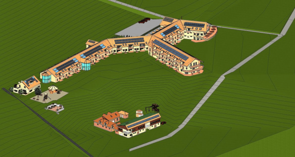 Der Wohnkomplex dient als Wohnsitz für Senior-Jäger und Naturliebhaber. Der Wohnkomplex wird eine Gesamtwohnfläche von 8100 m² in regional angepasster Fachwerkbauweise bieten. Die anliegende Pflegeeinrichtung sowie der Bio Bauernhof runden das Konzept ab.