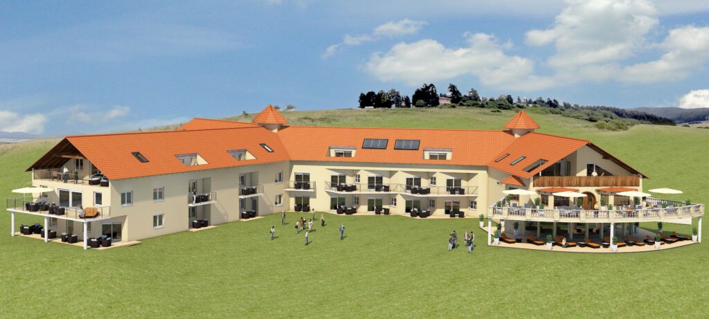 Die Wohnanlage JAGDHEIM. Sie besteht aus dem Senioren-Wohnbereich, dem Sport- und Generationenhotel und der Landjagdschule & Waldakademie.