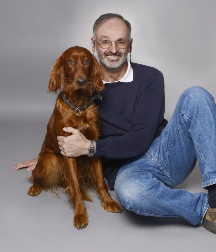 Der Initiator der Projektidee JAGDHEIM, Rüdiger Löwenstein, mit seiner Irish Setter-Hündin NELE.